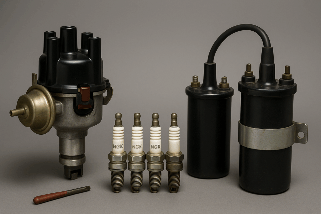 Chez JB Vintage Auto, nous maîtrisons la révision et le réglage des systèmes à rupteurs, le contrôle des bobines d’allumage et le remplacement des bougies selon les spécifications d’origine.