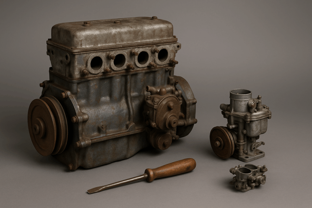Grâce à notre réseau de partenaires et fournisseurs spécialisés, nous assurons la recherche, l’importation ou la refabrication de pièces rares (carburateurs, allumage, joints, silent-blocs, etc.).